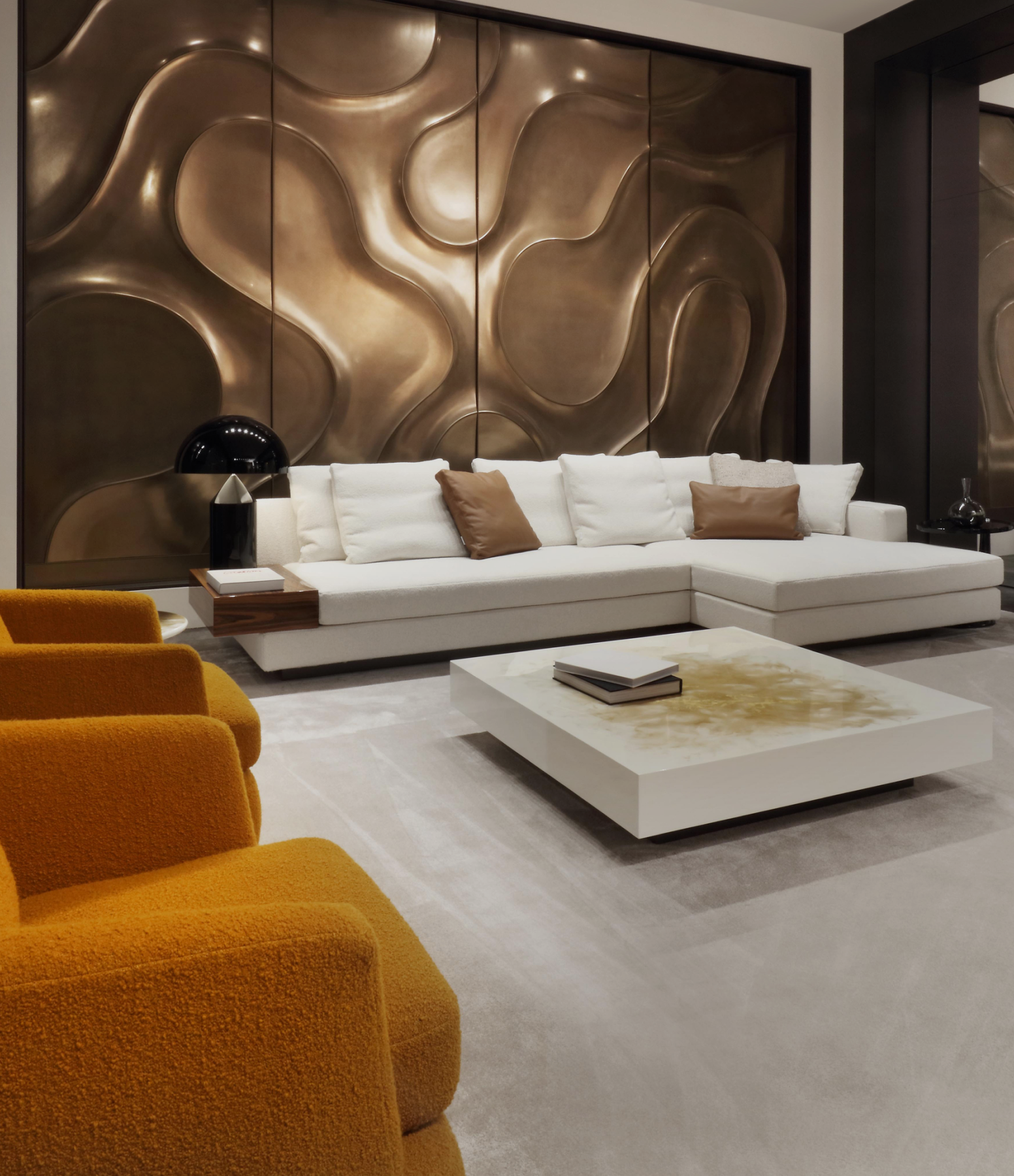 The doors of the 2025 collection its features by majestic shapes and monolithic proportions.