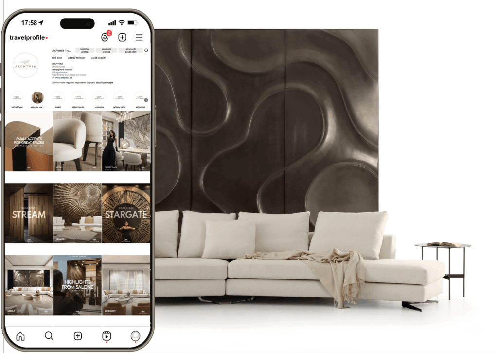 Alchymia, redefines the concept of luxury, in a unique experience where precious materials mingle with exclusive shapes and colours. ‘The Science of Luxury’ recounts the meticulous research, in shaping each detail to give life from a perfect combination of form and substance, in a unique and singular creation that escapes the law of repetition. The decorative walls, tables, chairs, armchairs and sofas are designed to go beyond the ordinary, to offer a sensory experience that meets the needs of those who seek not only elegance, but also quality and innovation. The vast choice makes it possible to personalise any interior space with products that embody the idea of luxury as a balance between tradition and innovation. Each element is designed to enrich the space with an exclusive touch, without ever losing sight of the substance. Each piece becomes part of a story, that of its environment.