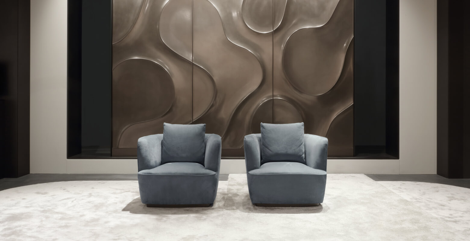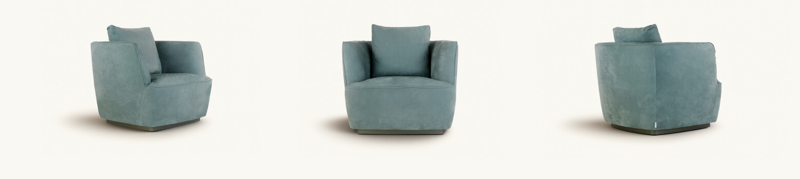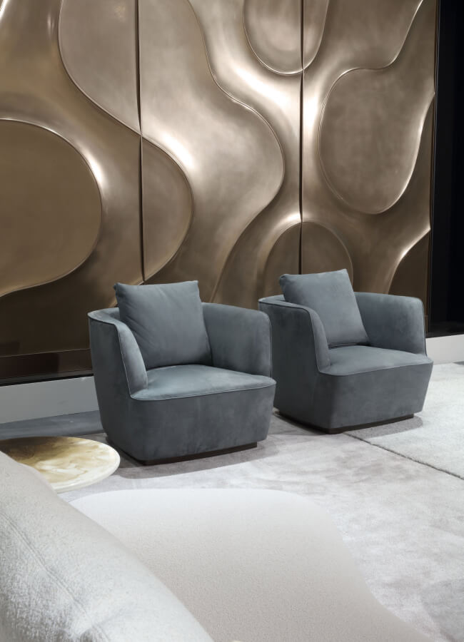 Doris armchair is the essence of elegant design, where pure geometry meets inviting volumes. Its silhouette is bold yet harmonious, sculpted to bring a sense of calm and character to refined interiors. A perfect balance between function and emotional presence.