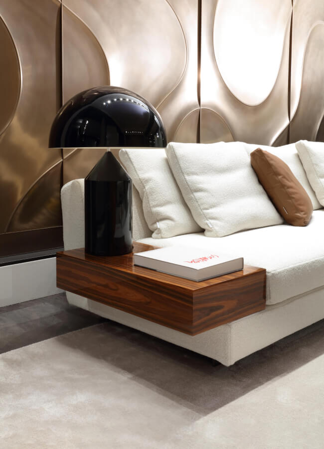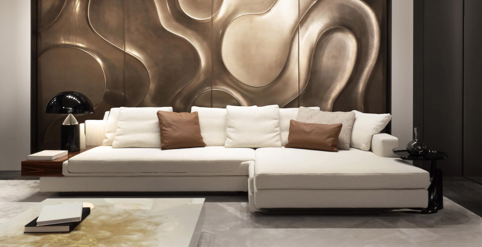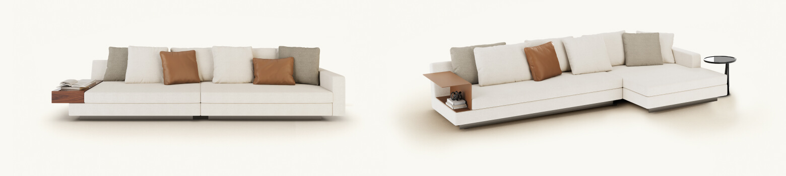 Duncan sofa blends elegant design with contemporary versatility. Its dynamic curves and sculpted lines trace a silhouette that is both refined and timeless. The generous proportions of the armrests and backrest express a fluid harmony, offering a sense of balance between strength and grace.