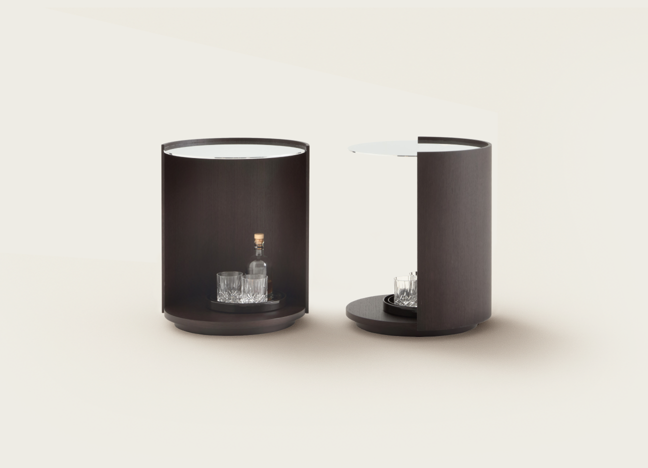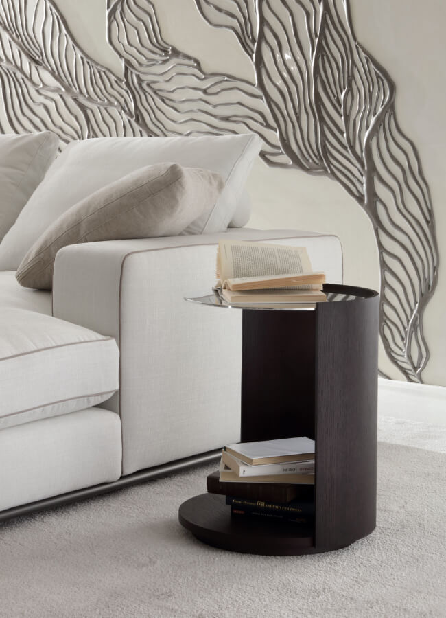 Defined by its modern cylindrical form, the Lens small table exemplifies the elegance of essential design. The structure, carved from oak, reveals the material’s strength and warmth, combining functionality with refined aesthetics. Its original silhouette offers a discreet yet distinctive decorative presence in any luxury interior.