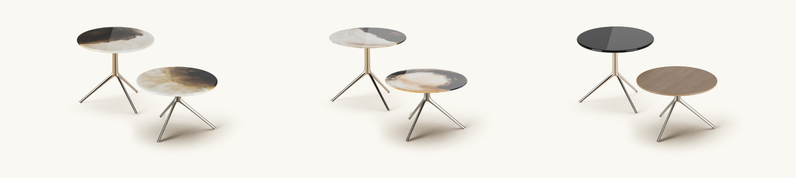Each version of Neal explores the dialogue between form and material. Its elegant tripod structure anchors the table while preserving a sense of airiness. Designed to enhance both residential and hospitality settings, it blends effortlessly with refined environments, adding a subtle yet impactful design presence.