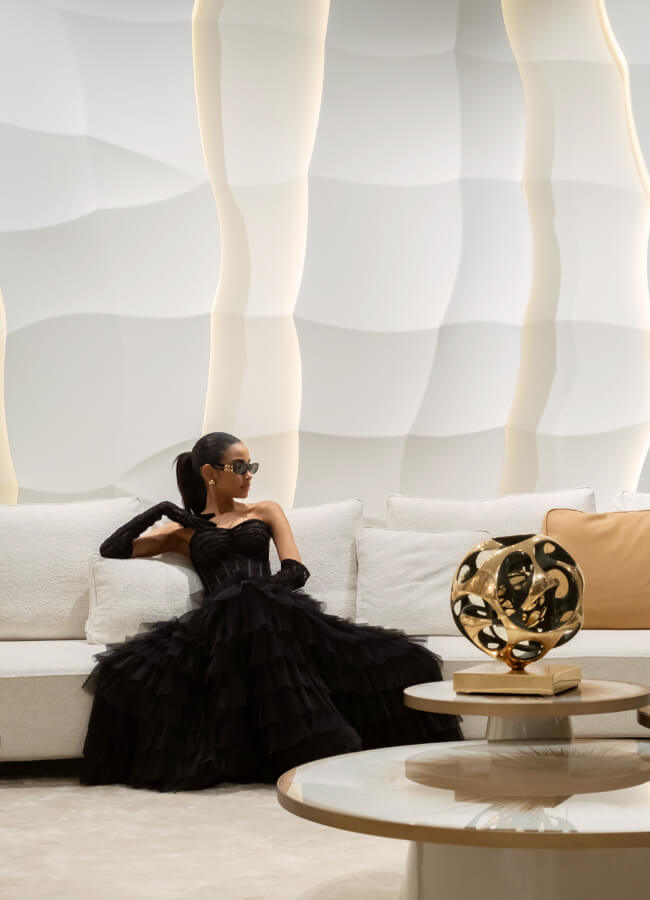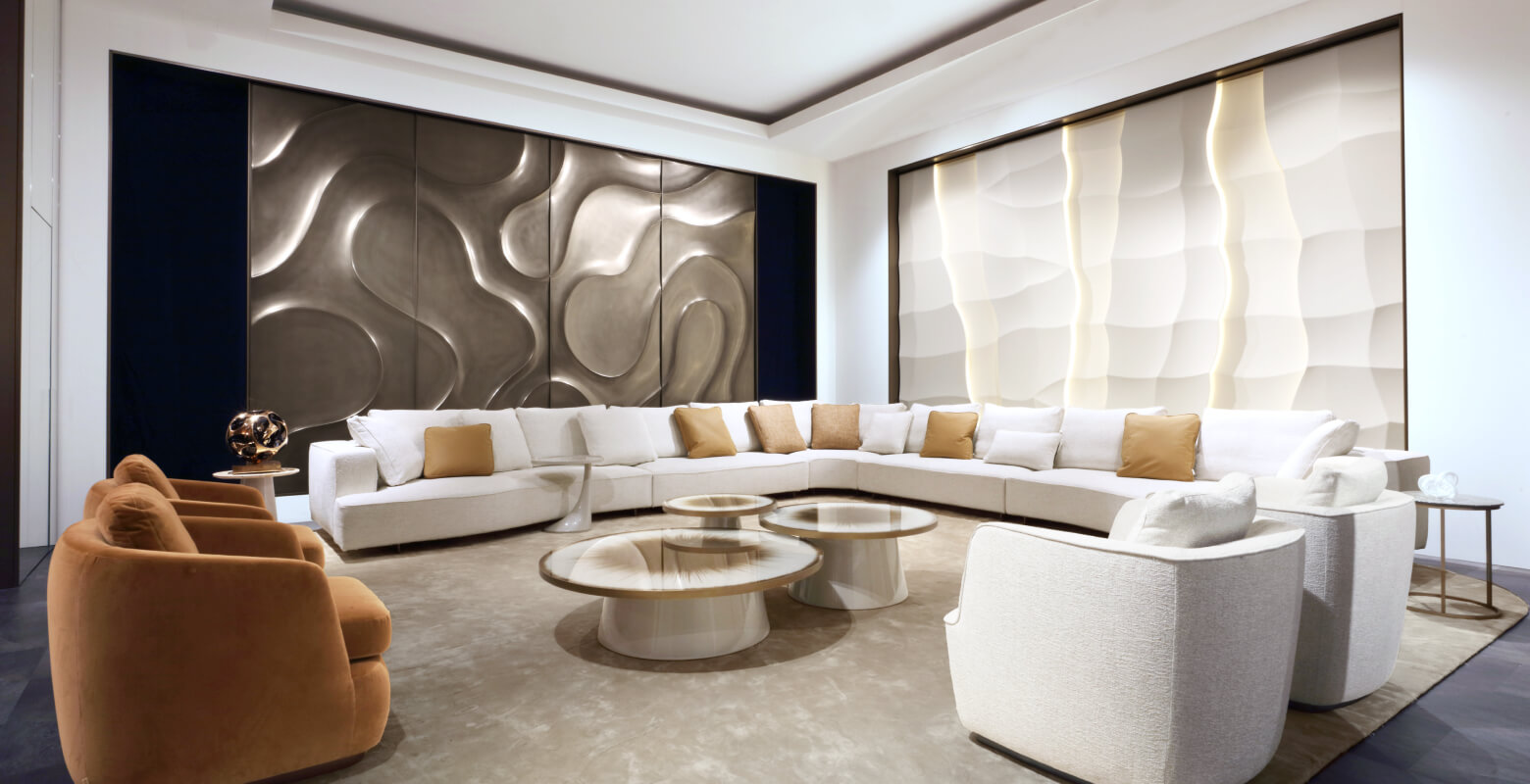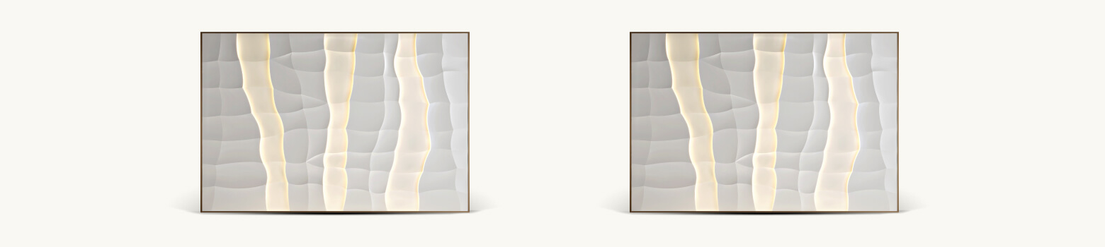 Wind Wave embodies a decorative vision where material becomes a canvas for contemporary expression. The surface transforms into a landscape of light and movement, with soft undulations reminiscent of ocean waves. This refined rhythm creates a sense of depth and dynamism, while the elegant balance of volumes and reflections establishes an atmosphere of luxury design with a unique artistic identity.