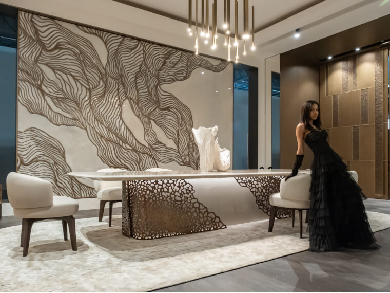 Defined by its sculptural silhouette, the Savannah table asserts its presence in the quiet sophistication of the most refined interiors, cladding create a unique atmosphere.